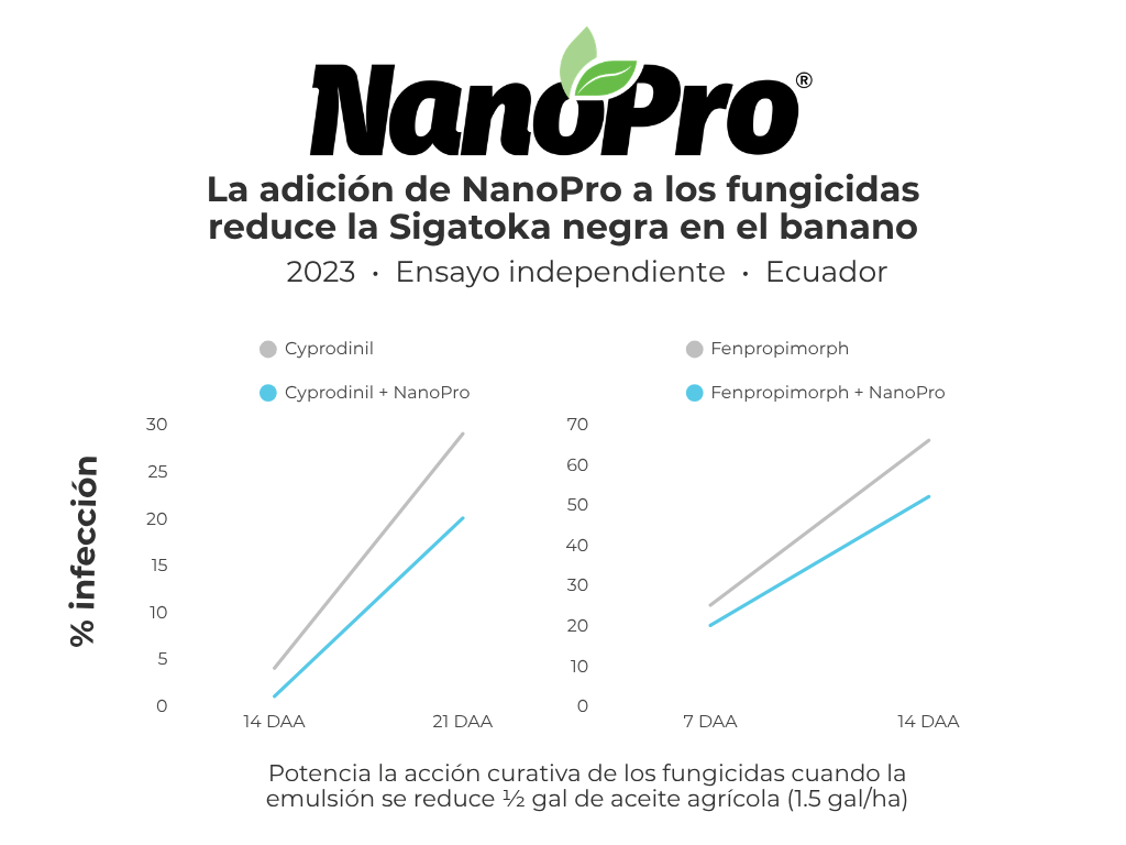 Adding NanoPro to Fungicide Reduces Black Sigatoka Disease for Banana.