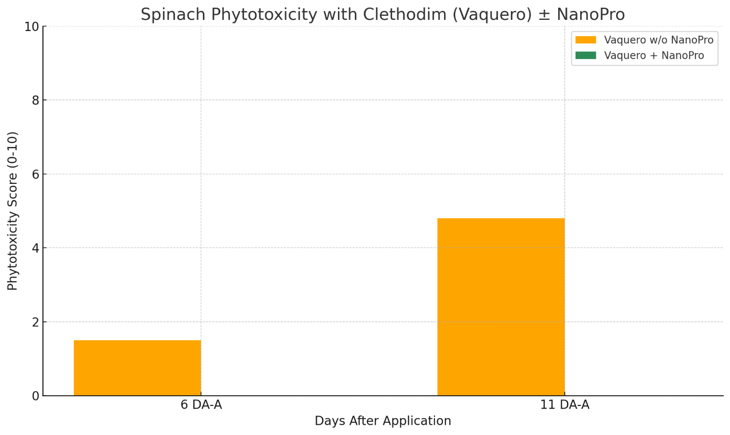 In 2025, a replicated trial in Yuma, Arizona found that NanoPro provided a significant reduction in crop injury with the herbicide active ingredient clethodim immediately following application.