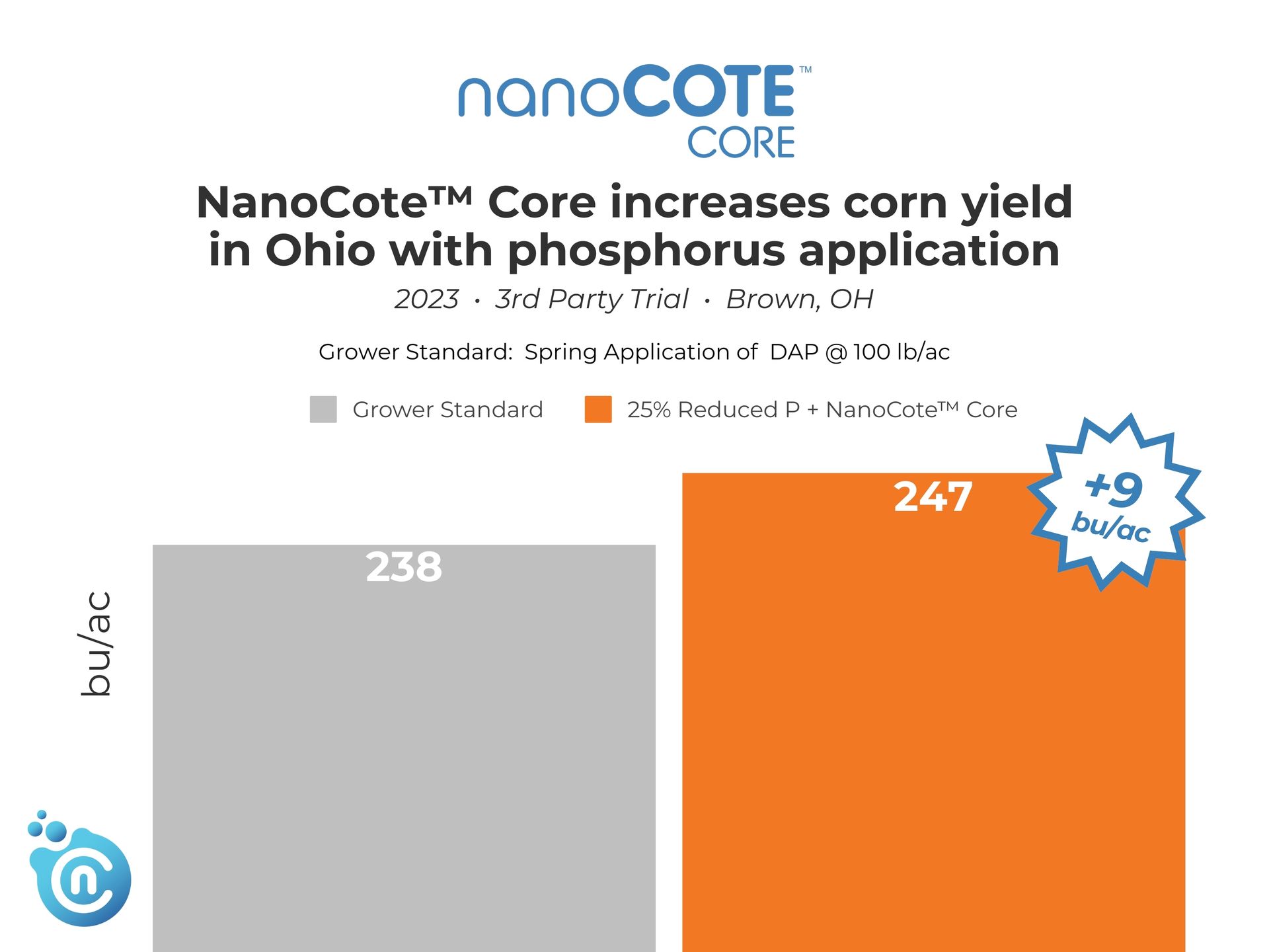 NanoCote has been shown to increase crop yield by 10-25%. Performance will vary based on background nutrient levels, soil pH, crop type, and other yield impacting factors.